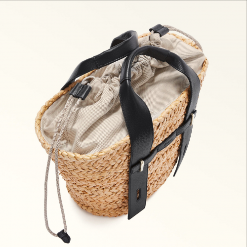 This mini Furla Giove tote bag features an elegant woven straw structure and two adjustable, detachable handles in a contrasting grained leather. A summer staple, it works as both a shoulder and handbag, whilst its two-tone drawstring inner pouch keeps even the smallest of your belongings safe.