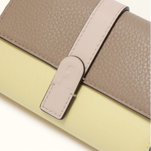 A compact, functional wallet that you can store in any bag. Furla Grazia stands out for its mixture of materials: smooth leather and contrasting grained details for a colour-block effect. The tri-fold design opens up like a book and features a spacious inner coin pocket with zip.