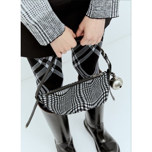 Check shoulder bag in cotton-blend with leather trims.