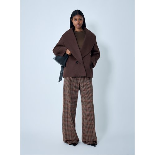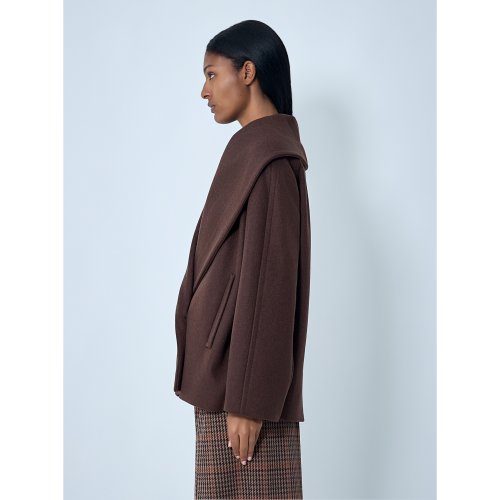 Button-down short coat in smooth-weave cashmere.
