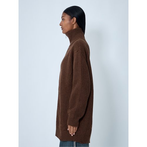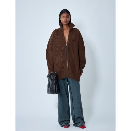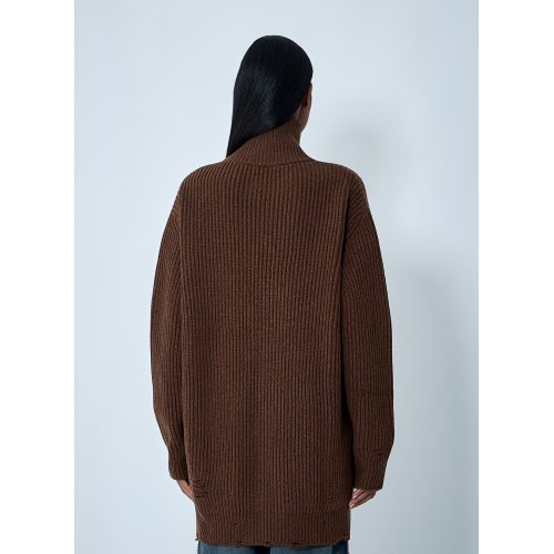 Distressed rib knit jacket in wool-blend.